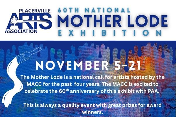 The Mother Lode is a national call for artists hosted by the MACC for the past four years. The MACC is excited to celebrate the 60th anniversary of this exhibit with the Placerville Arts Association. This is always a quality event with great prizes for award winners.